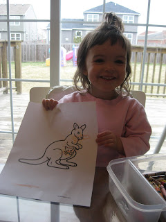 Stephen painted his kangaroo, pocket, and baby first and then cut out the pieces after it dried. We then glued it together and made a nice frame that Stephen was especially proud of.